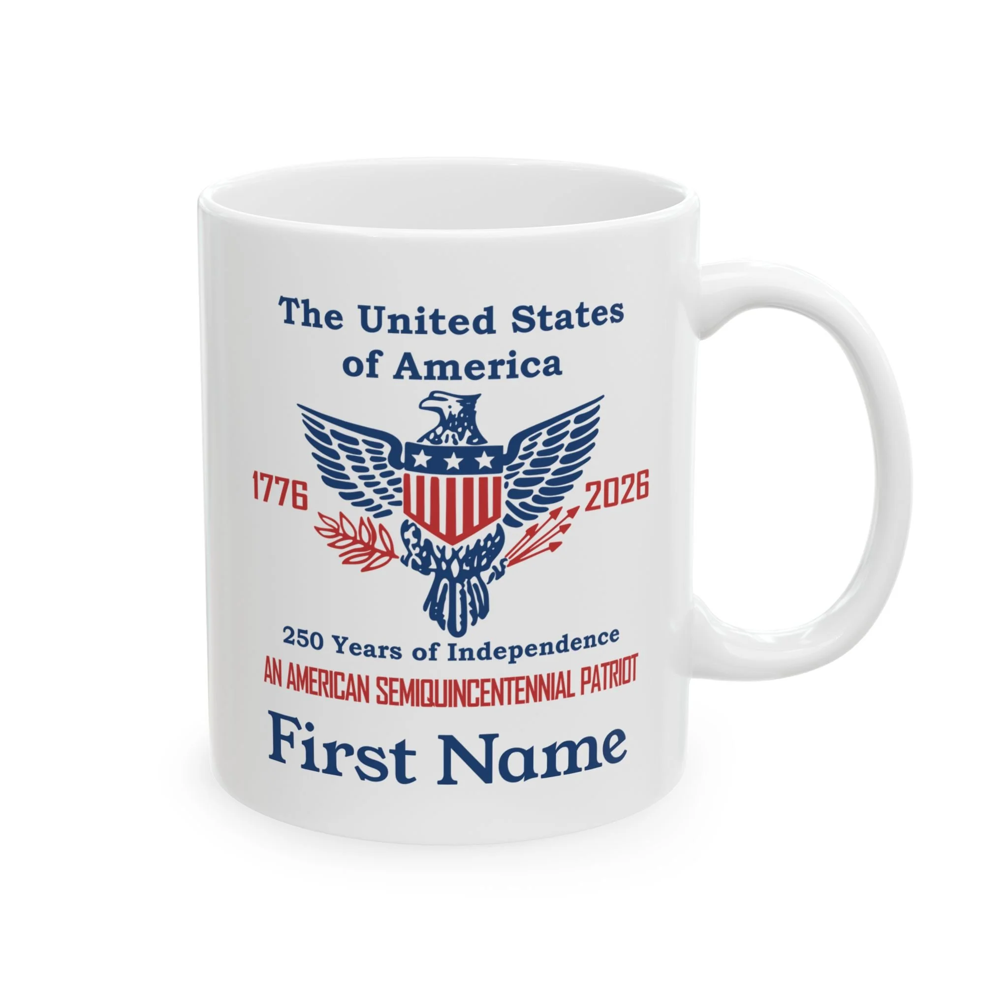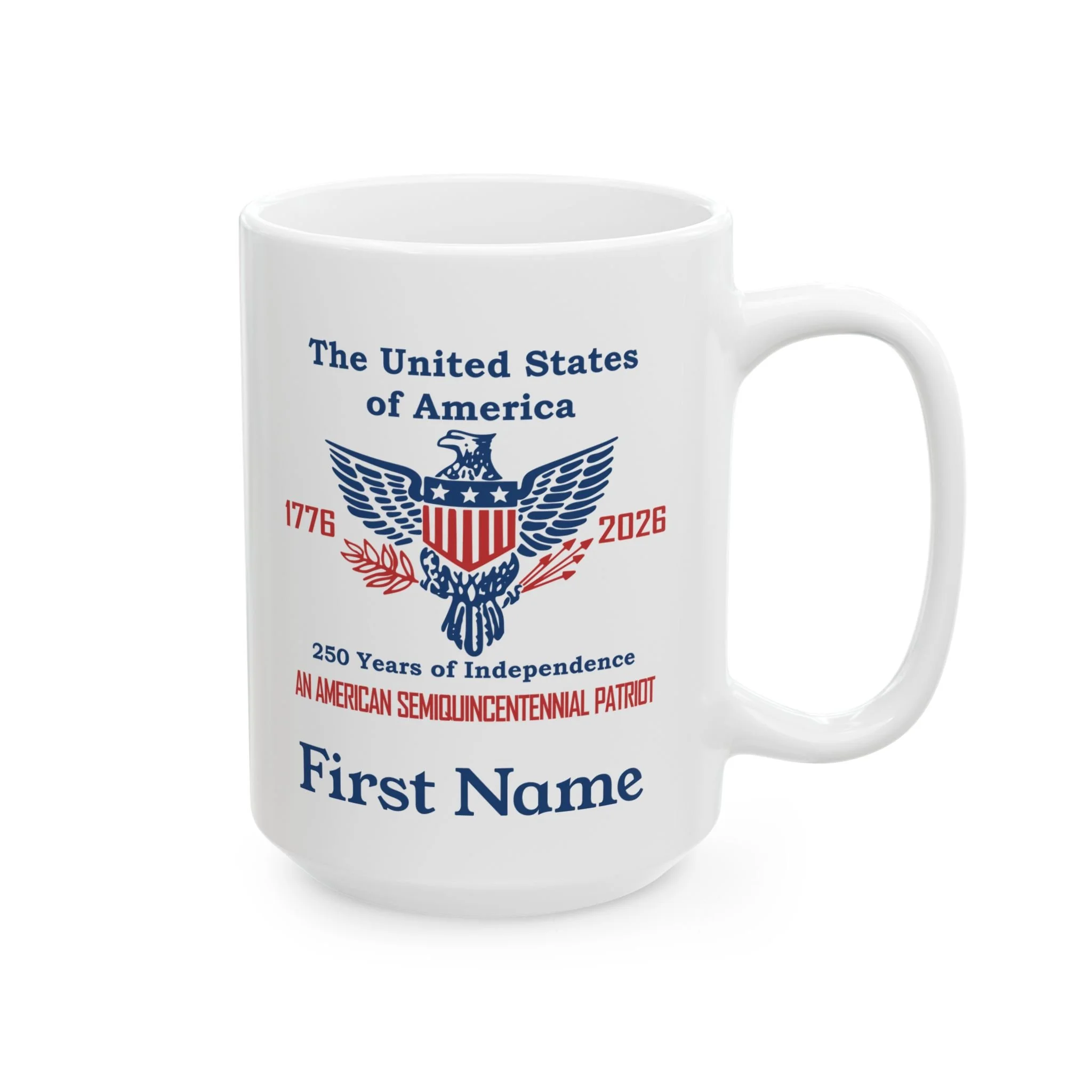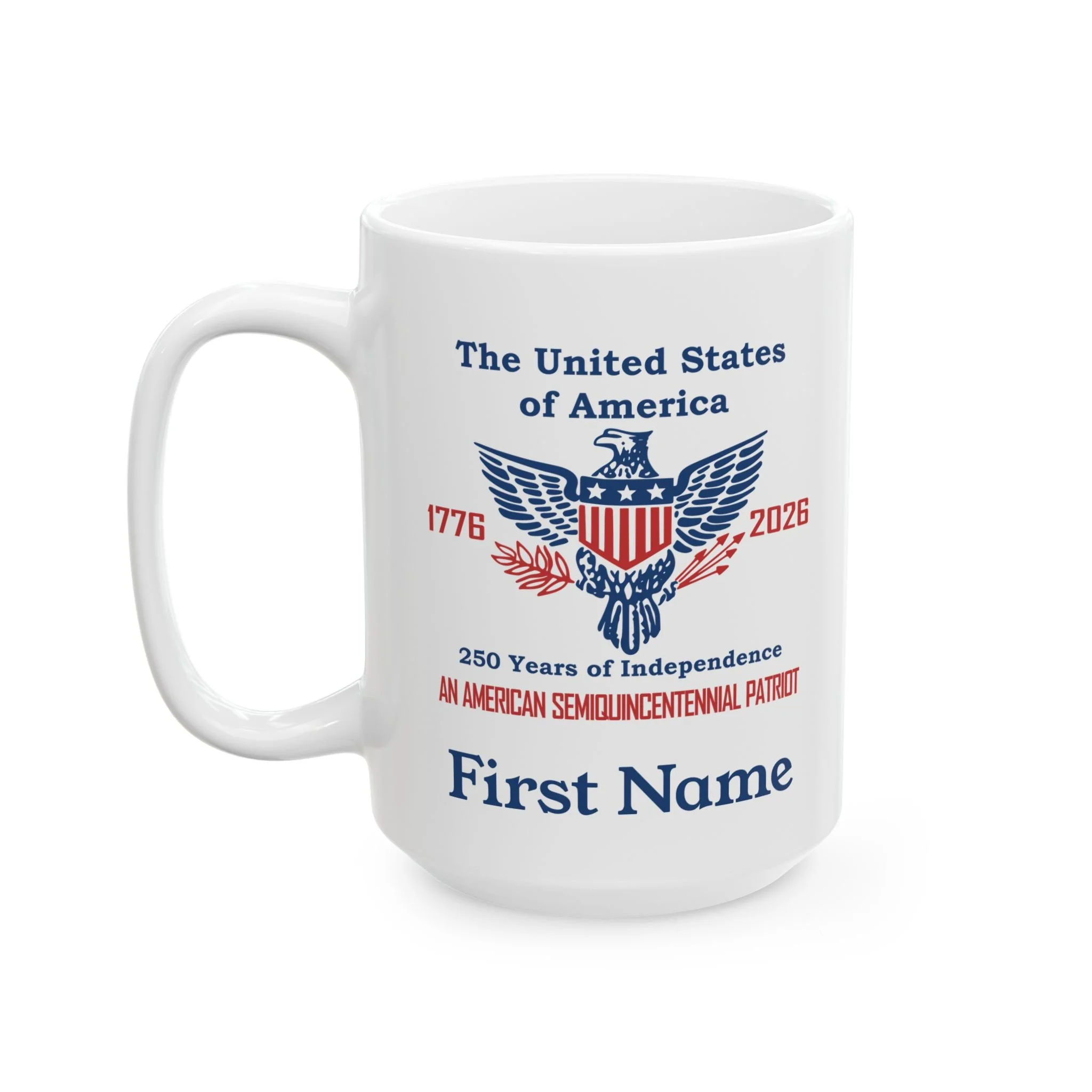 Coffee Mugs Celebrating 250 years of American Independence Semiquincentennial Quick View USA 250th Year Coasters Celebrating American Independence 1776-2026 (50 or 100 pcs) Semiquincentennial from $42.99 Quick View USA 250th Year White Ceramic Coffee Mug, 11oz or 15oz from $15.99 Quick View USA 250th Year Two-Tone Ceramic Coffee Mug, 11 or 15oz, Retro American Eagle from $15.99 Quick View Personalized An American Semiquincentennial Patriot Ceramic Mug (11oz/15oz) from $15.99 Quick View Personalized Two-Tone American Semiquincentennial Patriot Ceramic Mug 11 or 15oz in 3 Colors from $15.99 Quick View Liberty Bell 250 Years of Independence Ceramic Coffee Mug - 3 color choices Semiquincentennial Merchandise from $15.99 Quick View The United States 250 Years of Independence 1776 - 2026 Ceramic Coffee Mug 11oz or 15oz from $15.99 Quick View Semiquincentennial 250 Years of Independence Coffee Mug, 3 color options, in 11oz or 15oz from $15.99