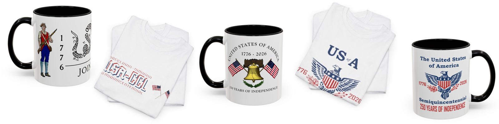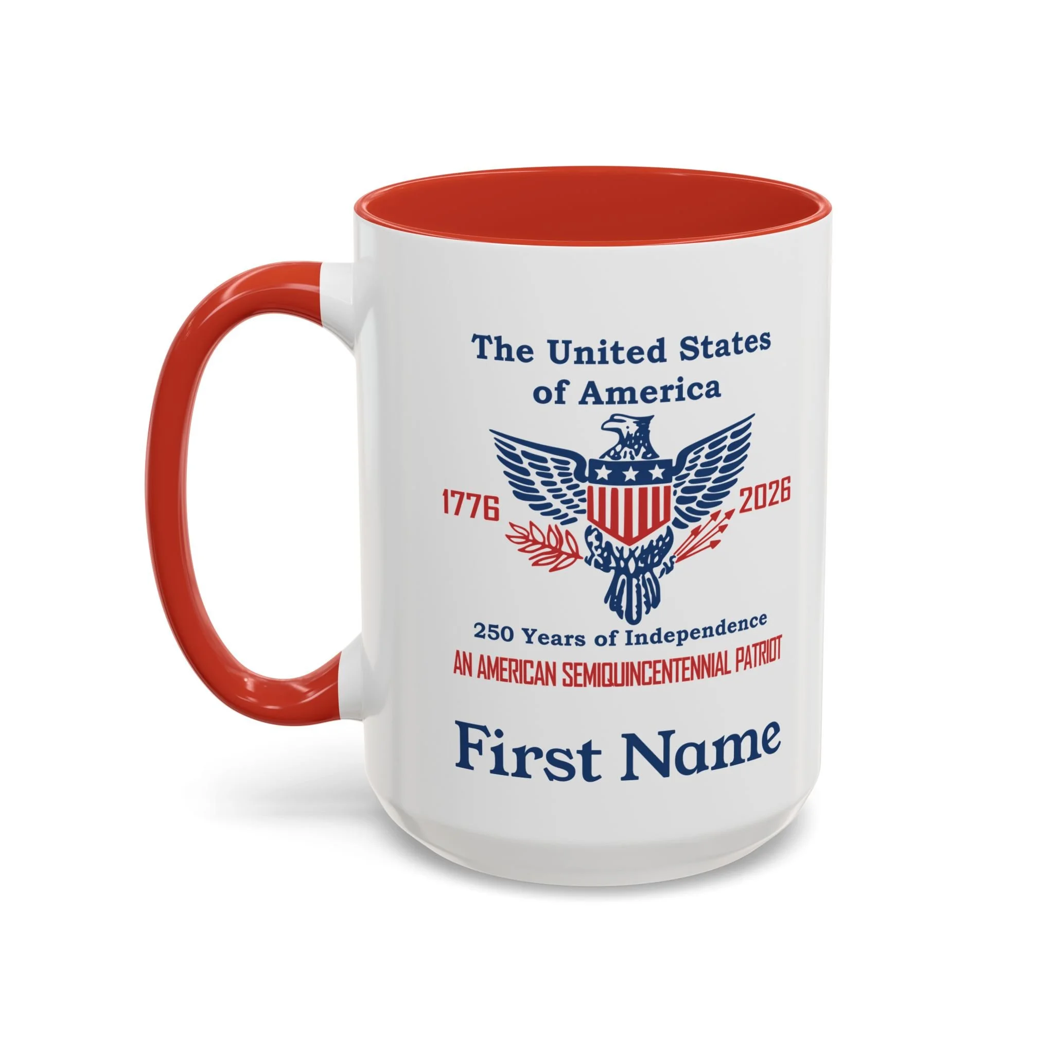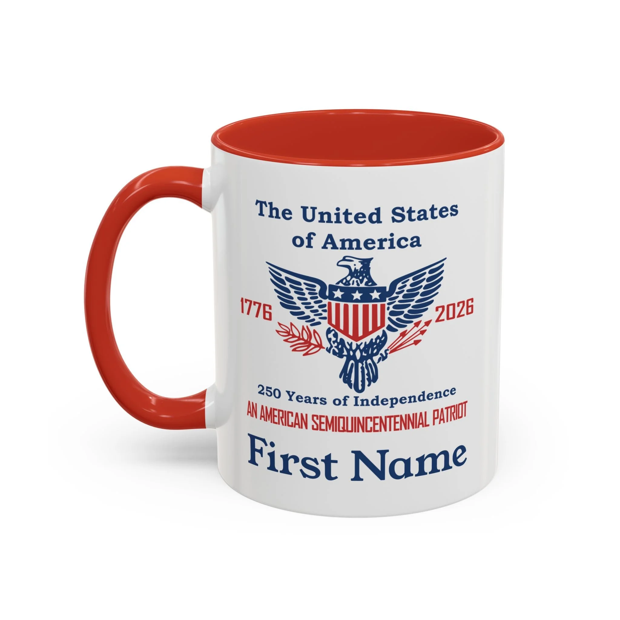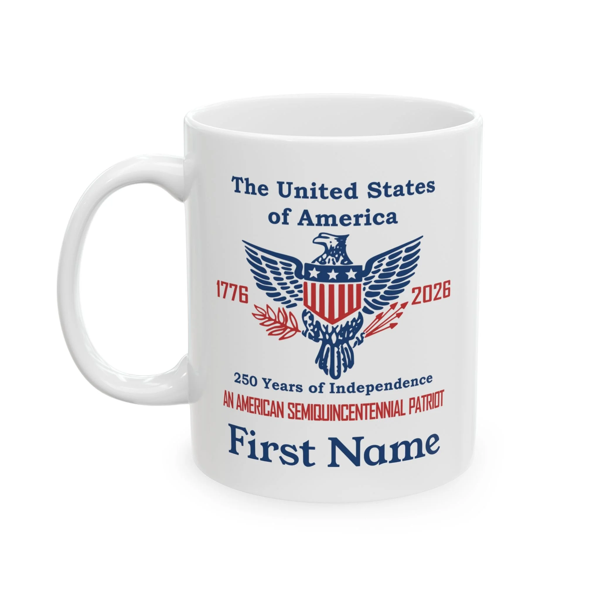 Coffee Mugs Celebrating 250 years of American Independence Semiquincentennial Quick View USA 250th Year Coasters Celebrating American Independence 1776-2026 (50 or 100 pcs) Semiquincentennial from $42.99 Quick View USA 250th Year White Ceramic Coffee Mug, 11oz or 15oz from $15.99 Quick View USA 250th Year Two-Tone Ceramic Coffee Mug, 11 or 15oz, Retro American Eagle from $15.99 Quick View Personalized An American Semiquincentennial Patriot Ceramic Mug (11oz/15oz) from $15.99 Quick View Personalized Two-Tone American Semiquincentennial Patriot Ceramic Mug 11 or 15oz in 3 Colors from $15.99 Quick View Liberty Bell 250 Years of Independence Ceramic Coffee Mug - 3 color choices Semiquincentennial Merchandise from $15.99 Quick View The United States 250 Years of Independence 1776 - 2026 Ceramic Coffee Mug 11oz or 15oz from $15.99 Quick View Semiquincentennial 250 Years of Independence Coffee Mug, 3 color options, in 11oz or 15oz from $15.99